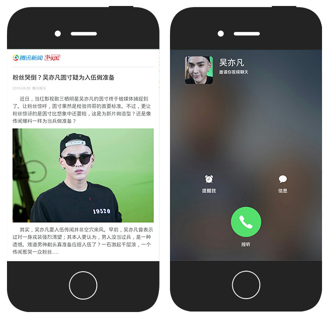 ??凡是聊H5,都會(huì)提及騰訊旗下全名突擊出品的“吳亦凡入伍”。它開啟了動(dòng)態(tài)視頻與靜態(tài)頁面相結(jié)合的時(shí)代,可以說是技術(shù)取勝的代表性作品。“吳亦凡入伍”的成功首先是它選擇的明星題材,與流量人物相關(guān)的內(nèi)容本身具有傳播性。加上“入伍”更是提高了話題性,因?yàn)榇箨憥缀鯖]有明星入伍的新聞。結(jié)合這兩點(diǎn),就已經(jīng)為H5的刷屏做好了伏筆。