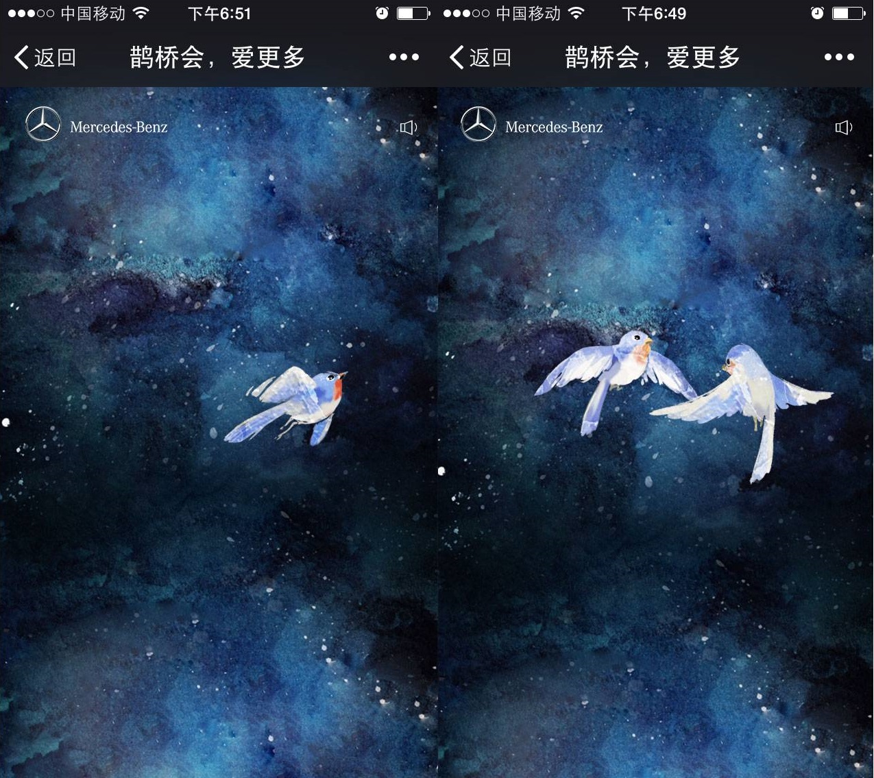 ??如奔馳出品的《鵲橋會,愛更多》,兩個手機掃碼就能看到整個畫面。