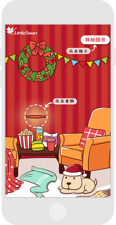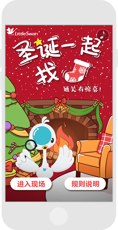圣誕節日游戲,通過通關形式獲得抽獎機會。從畫面中尋找圣誕襪通關。