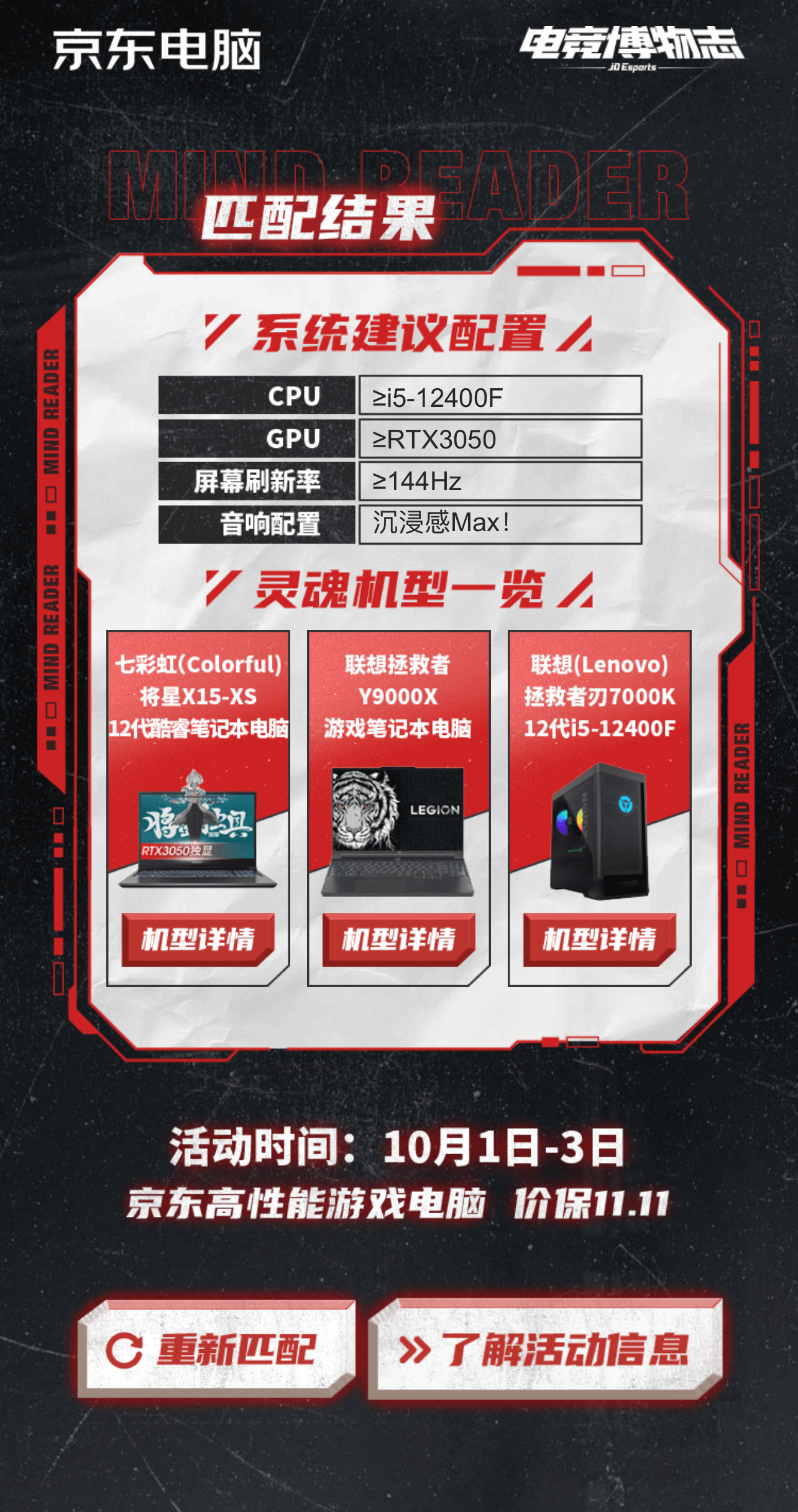 京東APP搜【玩家匹配模式】匹配你的靈魂電腦~?? 根據(jù)個(gè)人愛(ài)好選項(xiàng),推送符合屬于你個(gè)人比較適合的電腦。